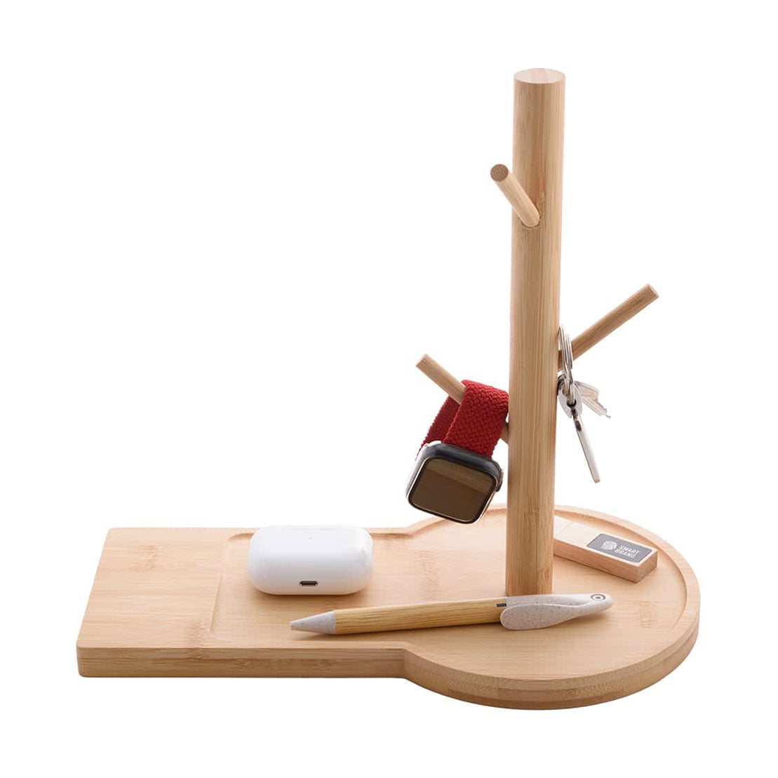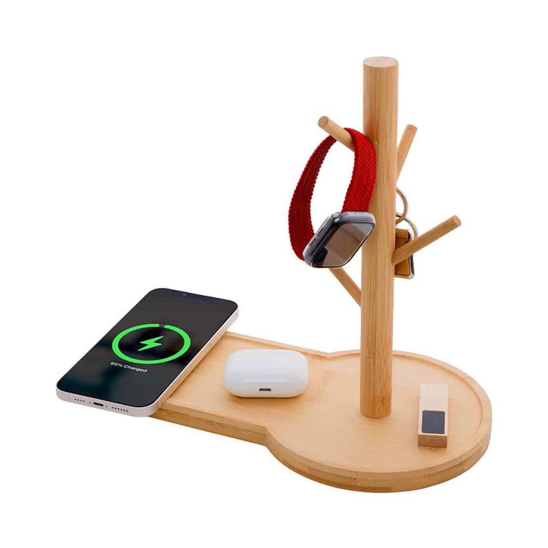 Its body is made of FSC certified Bamboo and it closely resembles a tree. Like a tree giving life to the environment, this tree gives life to all our devices and belongings. You can use the device as a tray to conveniently organize daily items like your keys, headphones, stationery, and others. The 15W wireless charger ensures the fastest possible charge for your smartphone or other Qi Qi-enabled devices